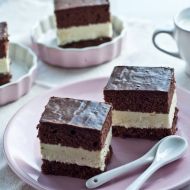 To leciutkie niczym chmurka ciasto zachwyci nie tylko dzieci, ale również nieco starszych łasuchów. Kakaowy biszkopt przełożony jest wspaniałym mlecznym kremem z mleka w proszku, a całość polana czekoladową polewą.