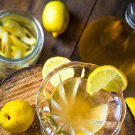 - Pigwy opłucz z cukru, a następnie przełóż do misy i zalej wódką na ok 10 – 15 minut.