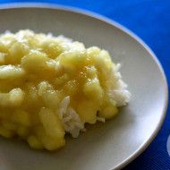 6. Gotowy ryż wyłóż do miseczek i nałóż prażone jabłka.
