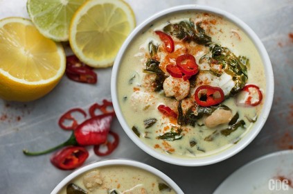 Zielone curry ze szpinakiem i krewetkami